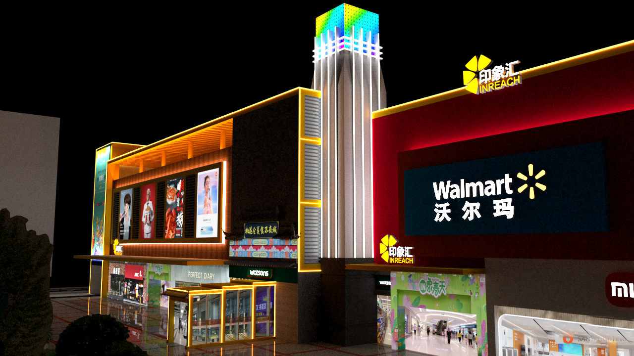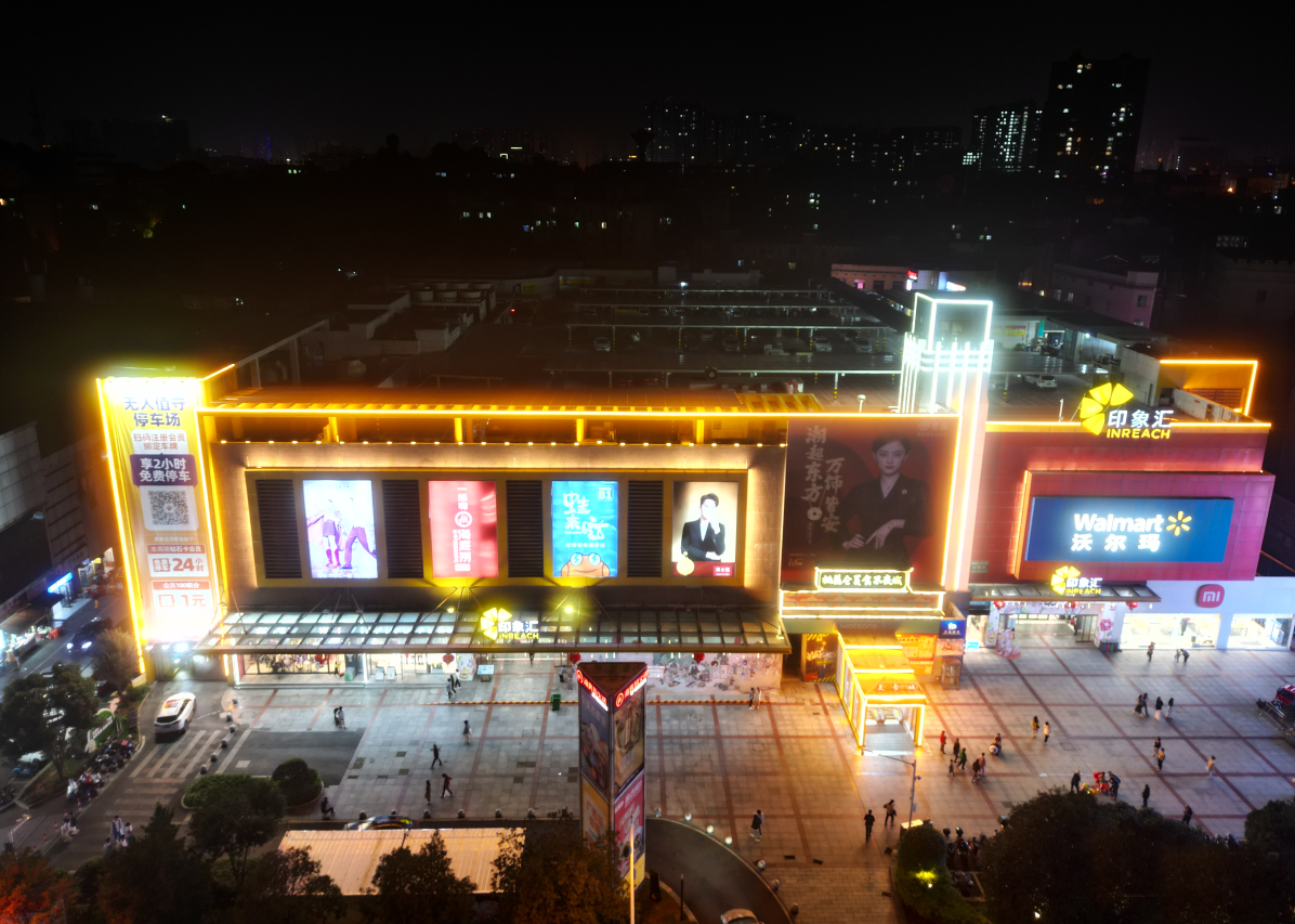 益陽印象匯坐落于赫山區(qū)桃花侖西路 555 號,作為印力集團布局湘中的重要商業(yè)載體,這里匯聚了沃爾瑪、海底撈、茶顏悅色等數(shù)十家知名品牌,既是赫山區(qū)商超人氣榜的榜首??停彩浅休d市民日常消費與社交休閑的核心空間。然而,隨著城市夜景美學的升級與夜間經(jīng)濟的發(fā)展,原有外墻燈光逐漸顯現(xiàn)出亮度不均、風格單一、能耗偏高的問題,與商圈日益增長的品質(zhì)需求形成反差。